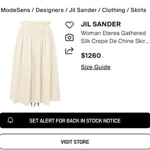 Jil Sander Size M Cream Eterea Gathered 100% Silk Crepe De Chine Midi Skirt