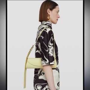 Strap is adjustable. Can be worn as a shoulder bag, belt bag, across the body bag. Super versatile and really cute. In very good used condition, all scratches and scuffs pictured. This bag was a sample, and is one of a kind from Milan FW Sept 2022 (see embossed stamp on strap).