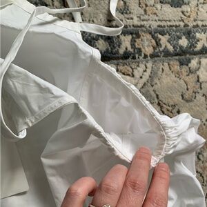 Elegant white off-shoulder blouse with puff sleeves. Perfect for any occasion.