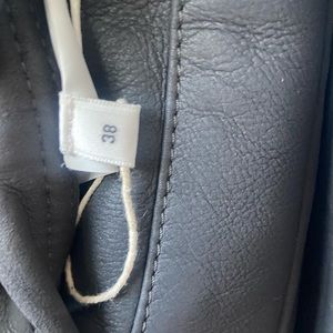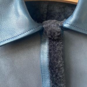 Jil Sander charcoal lamb leather jacket w/ navy leather trim and faux shearling