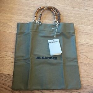 Jil Sander logo-print bamboo-handle tote bag - Green