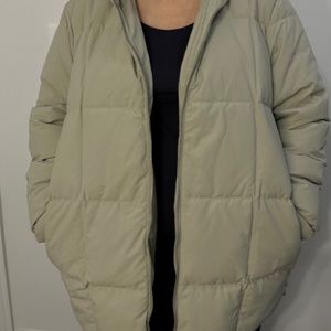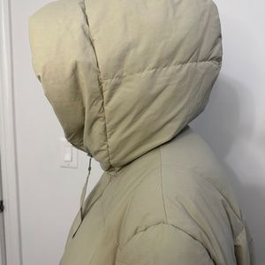 Jil Sander mint down jacket, quilted motif, frontal zip closure, hood, lateral zip pockets, padded