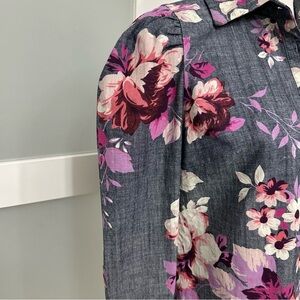Jill Jill Stuart Chambray Floral Button Up Top Multicolor SZ 2 Long Sleeve NWT