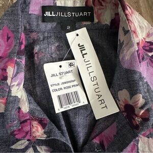 Jill Jill Stuart Chambray Floral Button Up Top Multicolor SZ 2 Long Sleeve Is New With Tags.