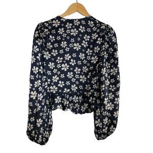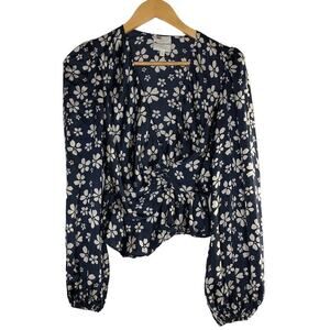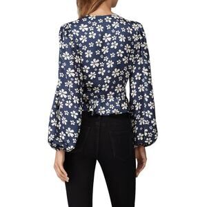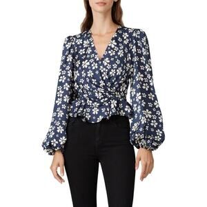 Jill Jill Stuart Marianne Top Floral Balloon Sleeve Peplum Wrap Blouse Blue 0