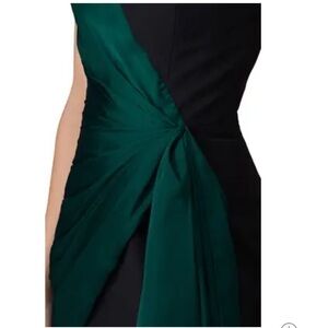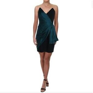 Jill Stuart crepe cocktail dress featuring a two tone front with ruching and draped bow detail.