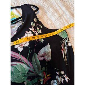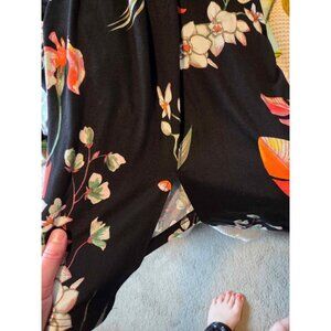 Super cute women's black floral jumpsuit. This material is soft like butter and has a stretch. Has pockets and the legs have a slit giving them an extra flare and flowy look.