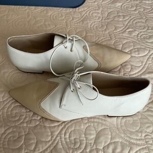 Jill Sander Navy Leather Oxfords, size US 10, Italian 40, Neutral colors, pointed toes,. Dust bag, very good condition, minor creasing..