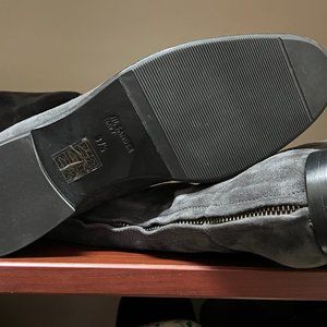 Brand new never worn zip up boot - can go over the knee or fold down a flap to show knee. Color is light navy that looks grey in certain light and darker in other light as can be seen in photo variations.