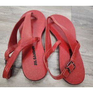Jill Sander Women's Sz. 38.5/8.5 Red Leather Buckle Back Thong Sandal