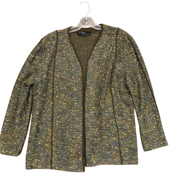 Chic St. John cardigan with a multicolor knit. Versatile and stylish.