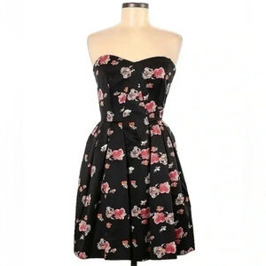 Jill Stewart | Black Floral Satin Strapless Sweetheart Neckline Cocktail Size 6