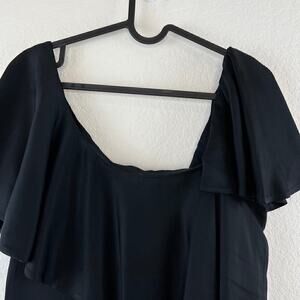 Jill Stuart Black Crepe Satin Ruffle Asymmetrical Neckline Jumpsuit Size 8