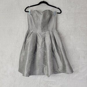 Jill Stuart Black & White Striped Strapless A-Line Pleated Mini Dress Women's 4