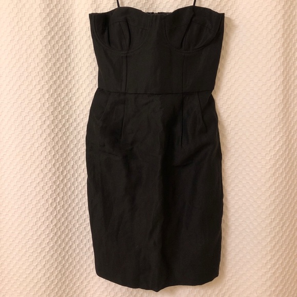 Jill Stuart : size 0 : black : strapless : linen/ wool blend : silk lining