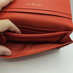 Jill Stuart Dark Orange Saffiano Leather Bi Fold Long Wallet. Excellent pre-owned condition with minimal signs of wear