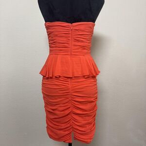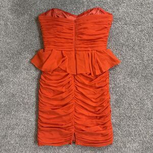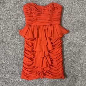 Jill Stuart Dress Womens 4 Orange Strapless Silk Peplum Ruffle Ruched Party