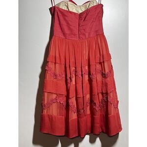 You are bidding on a dress from Jill Stuart, size 4, pink 100% silk, excellent used condition. Strapless, boned bodice, bow detail, back zip. Measures 14.5 inches across at bust, 31 inch length. All sales are final so please email with questions.