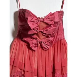 Jill Stuart EUC Pink Silk Chiffon Strapless Bow Barbie Preppy Dress Size 4