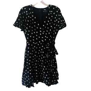 Jill Stuart Embroidered Floral Tie Side Dress Size 4 Black White