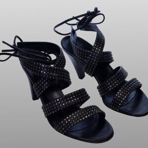 Jill Stuart Janis Studded Sandals Black Leather Strappy 6.5 NIB Italy