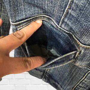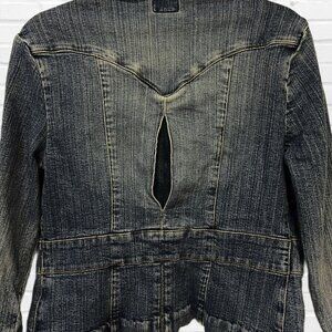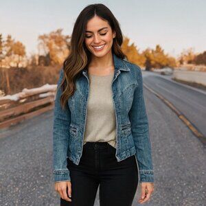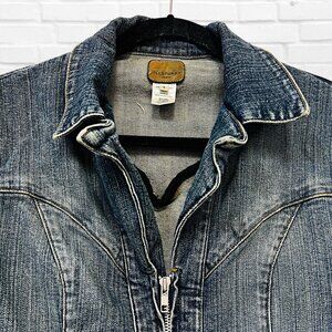Jill Stuart Jeans Vintage Front Zip Denim Jacket V-Neck Classic Jean Blazer