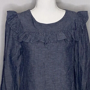 Jill Stuart Linen Blend Chambray Long Sleeve Ruffle Blouse - Size Small