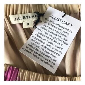 Perfect for your next vacation or summer event, this Jill Stuart dress is brand new with tags and retails for $286. It features an elegant off-the-shoulder neckline, long blouse sleeves with self-tie wrists, and flattering ruched details. The vibrant yellow fabric is decorated with a beautiful pink, white, and purple floral print, making this mini dress both fun and feminine.