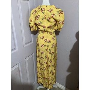 Jill Stuart Puff Sleeve Yellow Floral Fit & Flare MIDI Dress 0