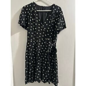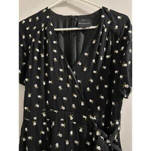 🔴Jill Stuart Womens Black Floral Short Sleeve V Neck Mini Sheath Dress size 8