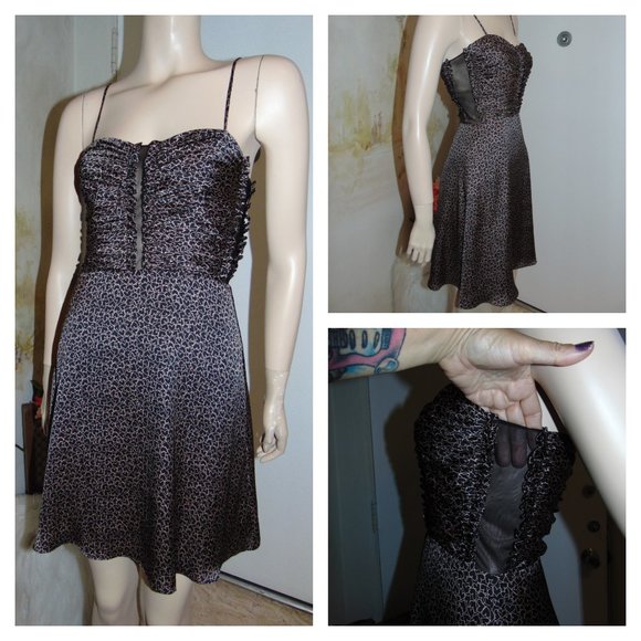 Jill Stuart Women's Black & Pink Hearts Spaghetti Strap Mesh Sheath Dress Sz S