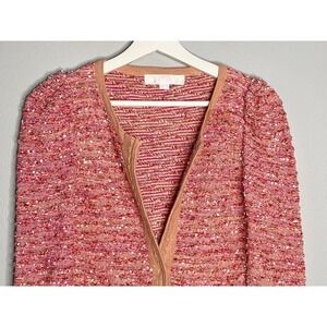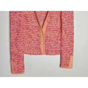 Jill by Jill Stuart Long Sleeve Button Front Tweed Cardigan Sweater Pink Women 8