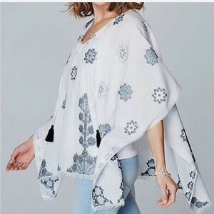 Jill Light & Airy Ocean Breeze Blue Jacquard BoHo PRINT SCARF PONCHO