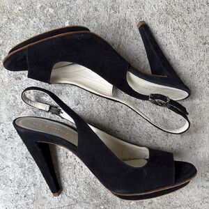 These are absolutely beautiful. Check out the pictures. It is a velvet like suede. Platform is .25 Heel height is 3.75