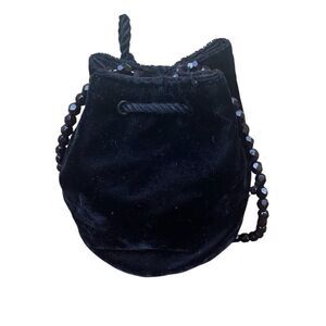 Jill Stuart Black Velvet Evening Crossbody Pouch w/Beaded Strap Night Out