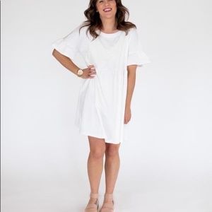 White babydoll dress from Jillian Harris x Jardine’s Domain. Part of the Jilly Box for Summer 2021. Very cute, quality fabric but very oversized! I normally wear a size 8 and this fits more like a 12 or 14!