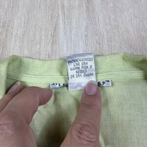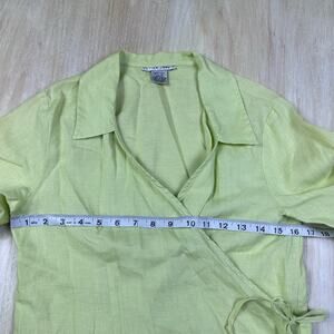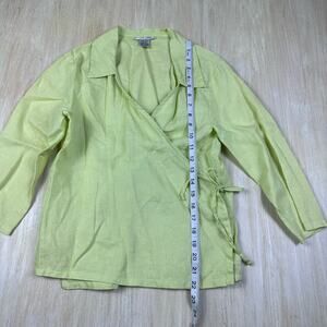 Jillian Jones 100% Linen Lime Green 3/4 Sleeve Wrap Shirt Casual Blouse Small
