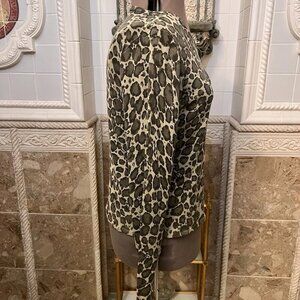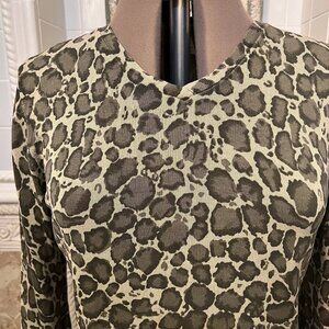 Jillian Jones. Sz Large. 85% Silk. Camo Knit Stretch Green Pullover Top. B94