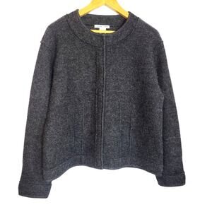Jillian Jones Women's 100% Wool Fuzzy Full Snap Thick Knit Sweater Gray Large