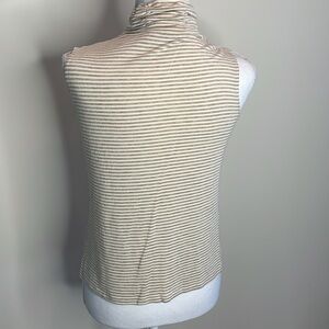 Elevate your wardrobe with this chic sleeveless turtleneck top. Featuring a stylish cream stripe pattern, it's perfect for any occasion. Size M