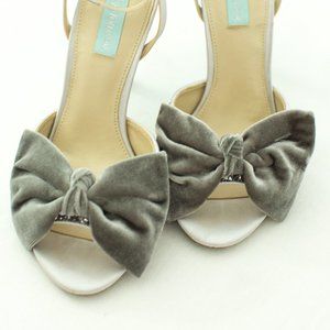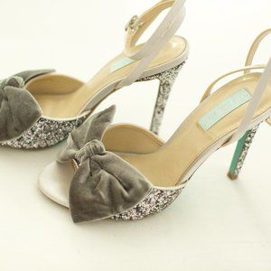 Jilly: Betsy Johnson Glitter & Bowed Heels, Silver Grey