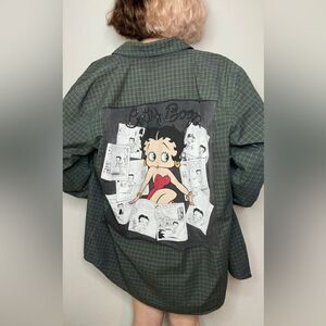 Jillysworld Betty Boop Upcycled Button Up Plaid Flannel Shirt