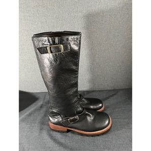 Jim Barnier Tall Black Leather Boots in womens size 9. Hard to find. Adjustable buckles along top and bridge. Calf circumference 14' Smooth and soft quality leather.