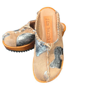 Jim Barnier Wooden Heel Clog Platform Sandals Mustang Silver Leather Size 10 New