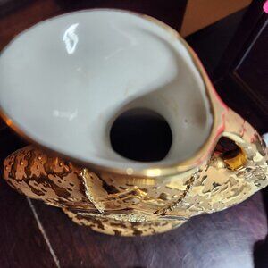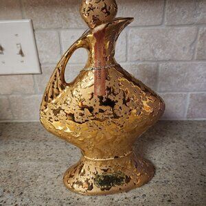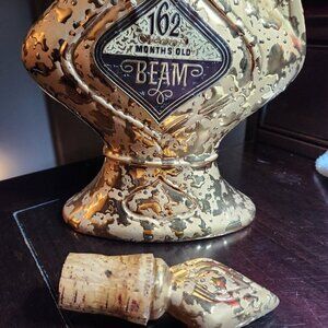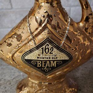 Vintage 1964 Jim Beam Decanter. Creation of James B. Beam Distilling Co., C. Miller 1964. Genuine Regal China. Gold plated with diamond chain and stickers attached.