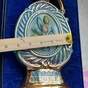 Jim Beam Whiskey Bottle Decanter 1973 Tulips design made from Regal China. In original box. Blue velvet lined box with one ripped corner. Bottle shows little to no wear. Love that the state sticker and seal sticker still on. See pics.