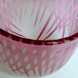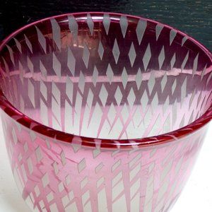 Jim Engebretson & Renee Nielsen Sculpture Art Hand Glass Vase Bowl Diamond Pink