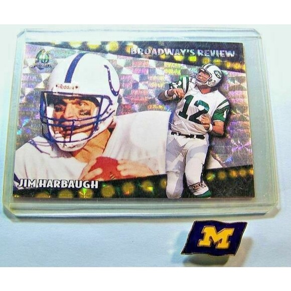 Jim Harbaugh, Joe Namath 1996 Topps Insert Card and Michigan Tie-tack