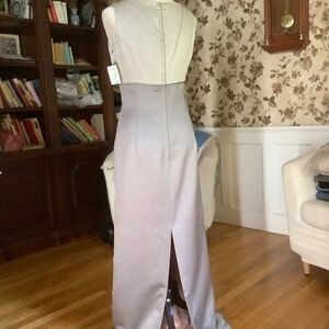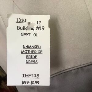 This dress I’d from Building 19. The tag say’s ‘damaged mother of the bride dress’. But there is no visible damage. The zipper is perfectly functional. Fully lined. Back slit. The tag says size 10. But I think it runs small. Waist 30 in, hips 39 in, length 57 in.