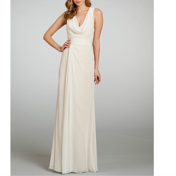 Jim Hjelm Occasions bridesmaid ivory maxi dress (bridal size 10 street size 6)